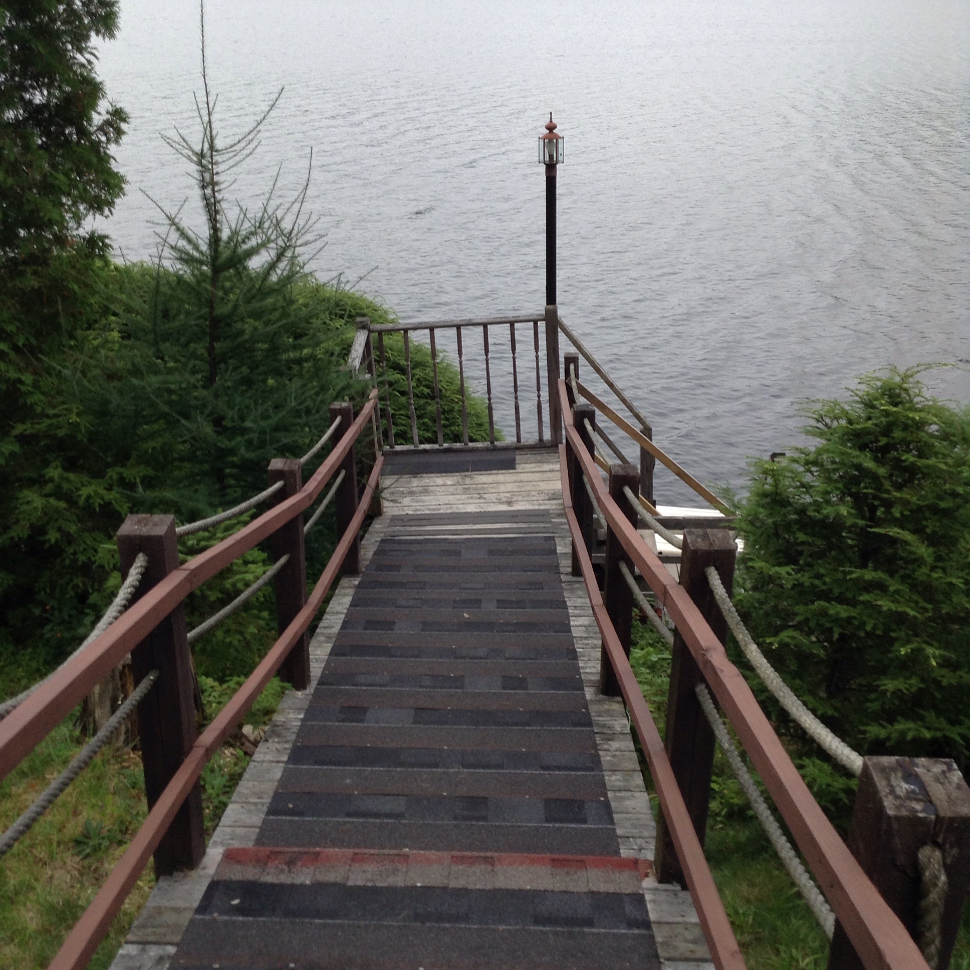 This trip to upstate New York was for my dad’s 80th birthday, and there wasn’t enough room for us all at my dad and stepmom’s place, so the camp was rented. My brother, Greg, his son, Alek, and my wife and I stayed here. Greg and Alek didn’t stay as long, left mid-week, but my wife and I stayed through to the next weekend. We went to my folk’s place and drove around during the day, but at night stayed here. After Greg and Alek left, in the early morning, while my wife still slept, I went down and hung out on the steps leading down to the dock and just…stared…out over the water…let my mind run wild…watched and listened to the two loons that were out there…drifting with the current and bobbing and swimming under the water to pop up somewhere else. Listened to their haunting wails, yodels, and tremolos….